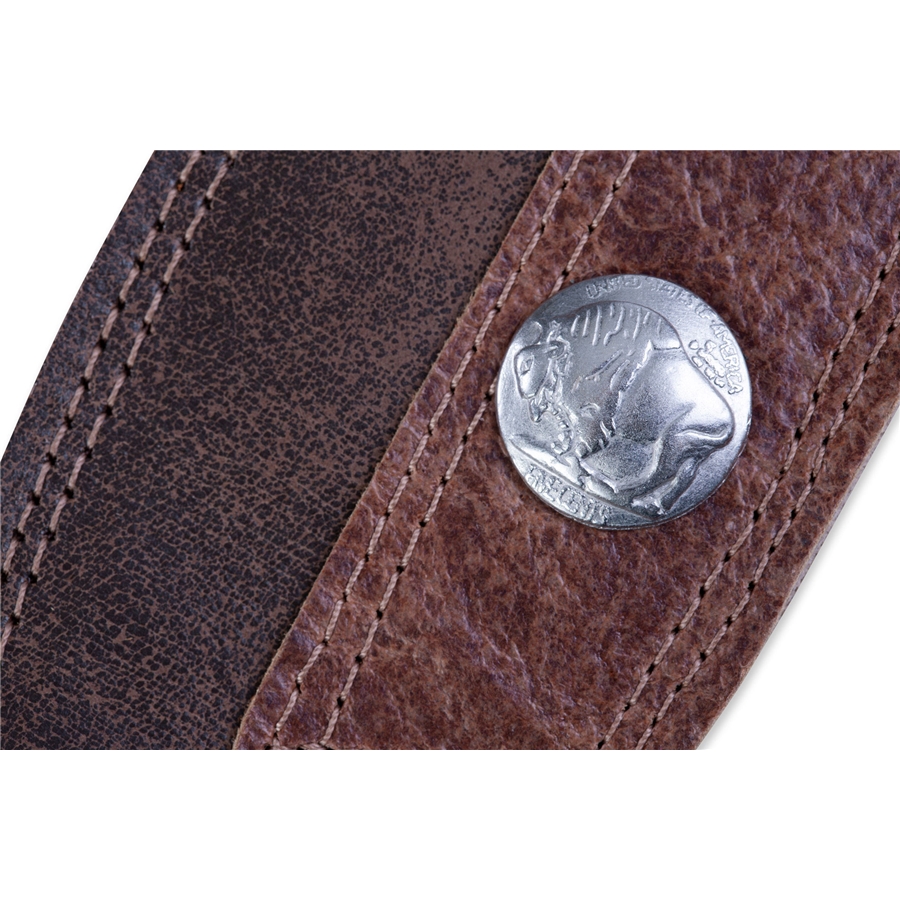 La PMD4BU-DBR è la tracolla in pelle con moneta 5 cent buffalo di casa Levy's, larga 2 1/2" (6.35 cm). Regolabile fino a 55" (139.7 cm), colorazione Dark Brown.