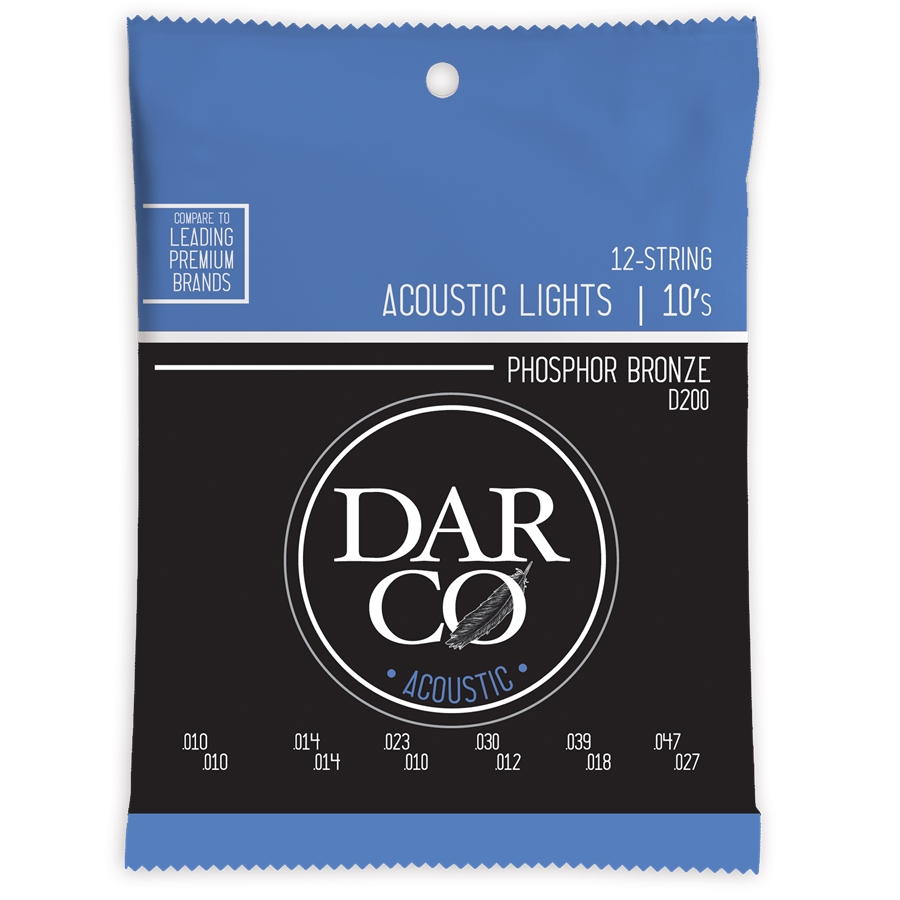 Le corde per chitarra acustica 12 corde D200 di Martin & Co Darco Acoustic sono la soluzione ideale per il musicista professionista che è solito cambiare le proprie mute frequentemente per avere costantemente il suono tipico della corda appena montata. Chitarre sempre nuove e pronte grazie ai prodotti Darco, che riducendo le corde a ciò che veramente è necessario ed evitando fronzoli inutili in grado di aumentare solamente i costi, hanno sviluppato corde potenti, chiare, equilibrate e longeve ad un prezzo ultracompetitivo. D200 sono formate da un'anima in acciaio stagnato e avvolgimento in Fosforo Bronzo di alta qualità, scalatura Light e diametri: 10-14-23-30-39-47 e 10-14-10-12-18-27
