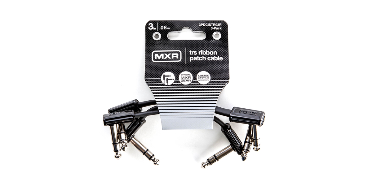 3PDCISTR03R è la confezione da 3 cavi patch TRS ribbon (piatto) di casa MXR, lunghi 8 cm. Le estremità metalliche a basso profilo permettono di utilizzare questi cavi anche nelle pedaliere più compatte, e i cavi in rame oxygen-free assicurano un segnale pulito.