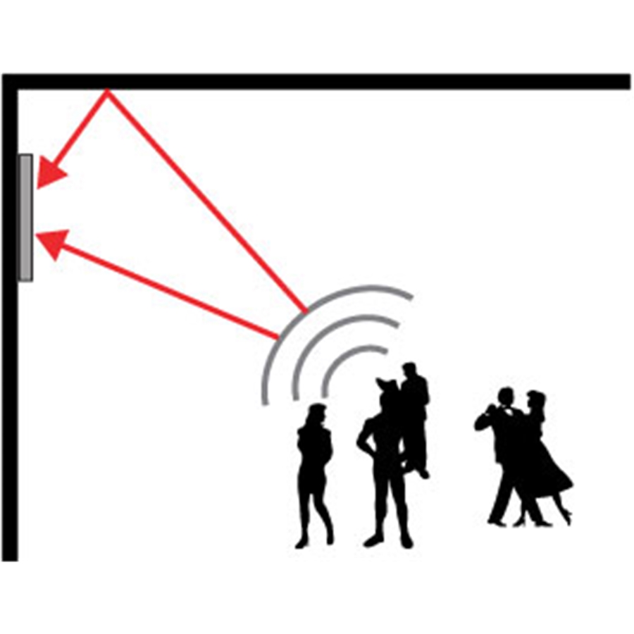 Primacoustic Hexus assorbe l'energia sonora prodotta dagli speakers convertendola in calore. L'energia sonora che viaggia attraverso la variazione di pressione dell'aria penetra nel pannello facendo vibrare le minuscole fibre di vetro genera calore. Questo trasferimento di energia termodinamico assorbe efficacemente l'energia sonora diretta e impedisce che si rifletta nella posizione di mix (sweet spot).