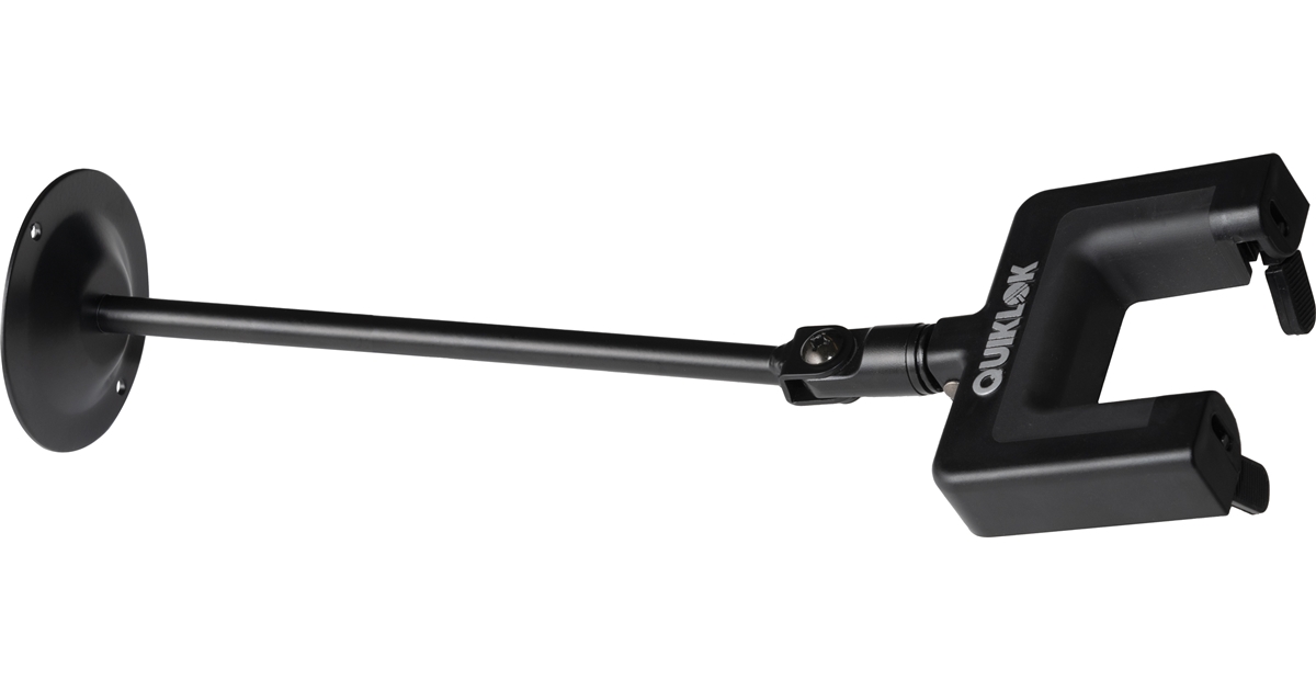 Quik Lok GS/701XL è un supporto per chitarra e basso da fissare a muro. Versione con braccetto extra lungo da 31 cm e meccanismo automatico di bloccaggio della paletta che si attiva sfruttando il peso dello strumento.