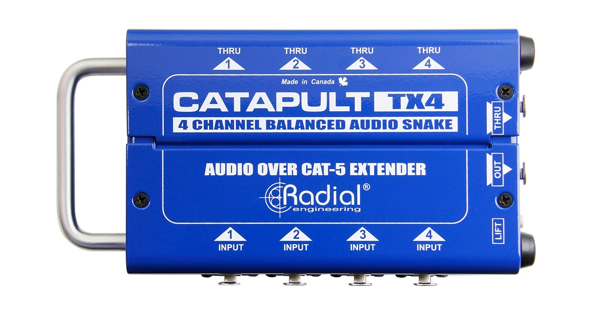 Catapult TX4 modulo di trasmissione con 4 ingressi XLR-F e 4 uscite XLR-M, è uno snake audio 4 canali che invia segnali audio analogici e digitali AES su cavo standard twisted-pair schermato Cat 5 o Cat 6. Questo permette ai tecnici sfruttare le caratteristiche di questa tipologia di connessione d'ampia diffusione, per il ritorno di snake o per il trasporto di canali audio bilanciati su grandi palcoscenici, mentre agli installatori di sistemi audio consente il riutilizzo di reti pre-cablate per distribuire i segnali audio su diversi ambienti.