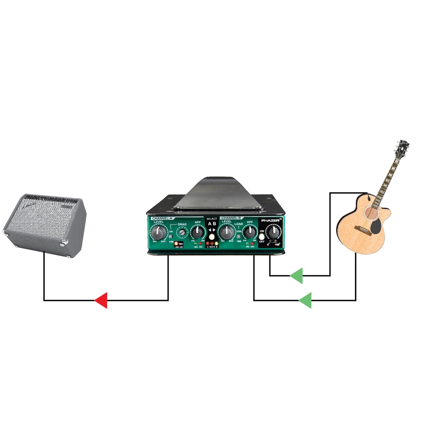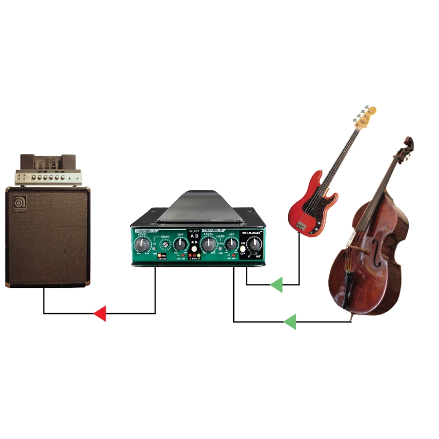 L'Input-B è dotato di un selettore di carico che permete di scegliere tra 200 K-Ohms per l’utilizzo con bassi passivi e 10-megaohm per l'utilizzo con trasduttori piezoelettrici. Elevare l'impedenza su un piezo estende la risposta in frequenza e smussa la risposta transitoria per un suono più naturale. Le cose si fanno davvero emozionanti quando si combinano i due canali. Una funzione 'blend' presente lateralmente, permetterà di combinare un pickup magnetico con un piezo o miscelare un microfono con un pickup. Il Phazer™ incorporato consente di allineare le due sorgenti audio per trovare il punto debole e fornire ciò che può solo essere descritto come il suono più naturale mai prodotto da uno strumento elettrificato.