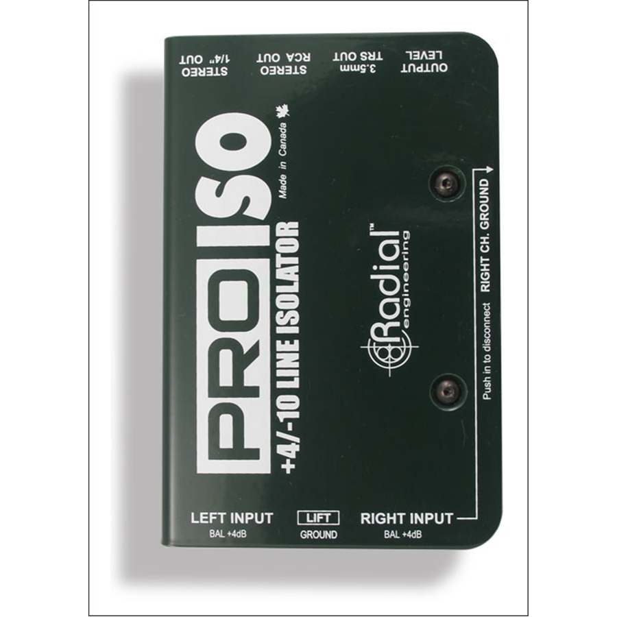 La progettazione di Pro-Iso con elettronica passiva utilizza componenti discreti al 100%. E' dotato di un controllo di livello “set & forget” che consente di attenuare il segnale di ingresso in modo da evitare sovraccarichi al dispositivo di destinazione. Le connessioni di uscita comprendono una coppia di connettori stereo da ¼“, un set di RCA e un mini 3,5 mm (1/8”) per l'interfacciamento con un mini registratore o un computer portatile. L'isolamento del trasformatore aiuta a eliminare il ronzio e i rumori causati dai loop di massa, eliminando al contempo il flusso di correnti continue vaganti.