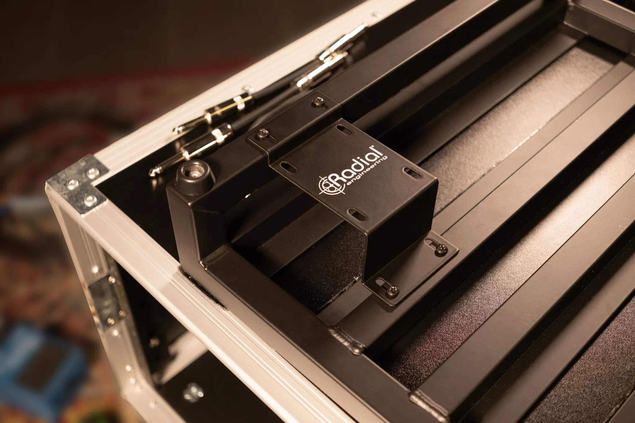 TrainTrack Plus è un adattatore per il montaggio, progettato per ospitare i moduli DI full‑size di Radial, come JDI e ProD2 su pedalboard di grandi dimensioni. Le sue dimensioni, compatibili con cabinet più ampi, permettono di fissare i dispositivi in modo stabile, mantenendo i cavi ordinati e sempre accessibili. È la soluzione ideale per pedalboard articolate che richiedono maggiore spazio e una struttura più solida.