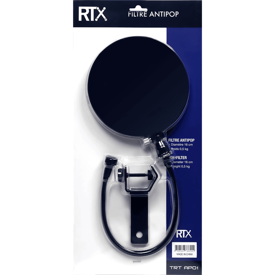 AP01 di RTX è il filtro antipop con diametro 16 cm facile da agganciare direttamente sull'asta microfonica.