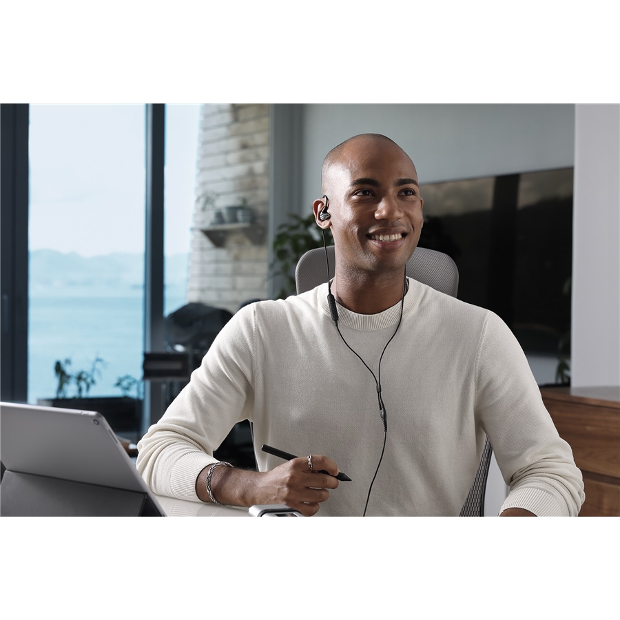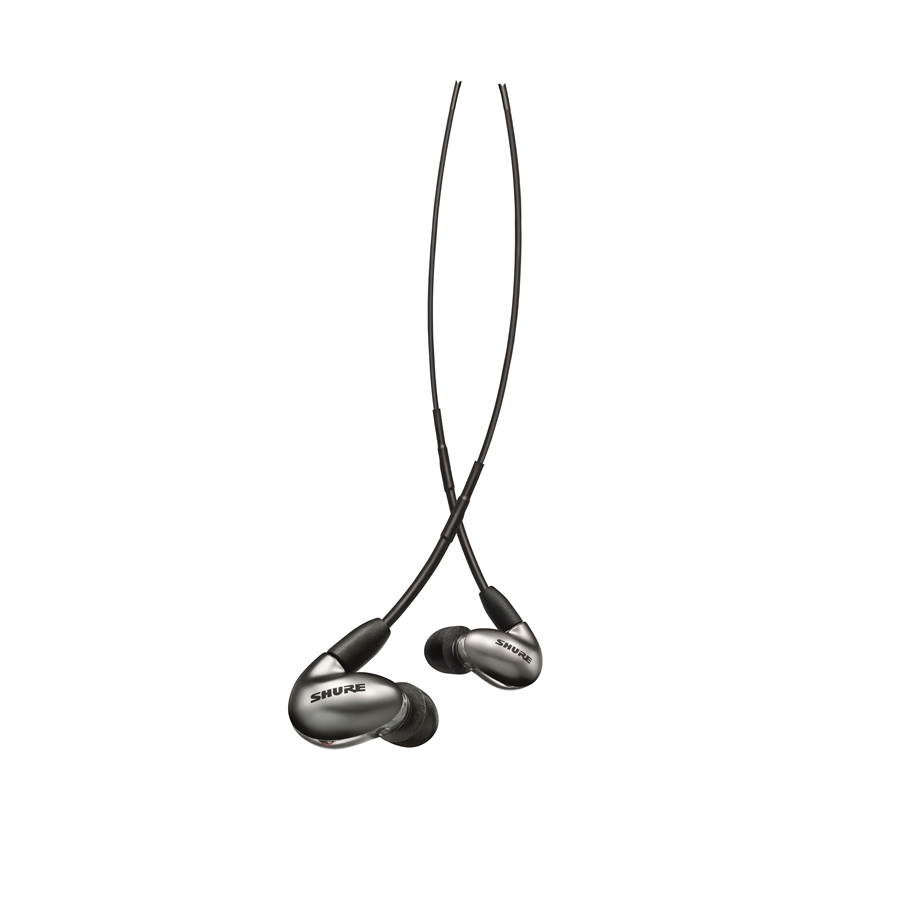 Auricolari professionali di fascia alta Shure 846 Gen 2 nella versione color Grafite con cavo di comunicazione dotato microfono e controlli per chiamate e riproduzione musicale.