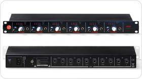 Amplificatore per cuffia dotato di 5 ingressi stereo con jack da 1/4\", 6 amplificatori stereo di alta qualità, ognuno con regolazione volume cuffia, selettore digitale di sorgente (ingresso 1-4), regolazione volume ingresso 5 (utile per miscelare una sorgente comune), uscita cuffia con jack 1/4\". Formato rack 1 unità, con alimentatore interno 110-220V.