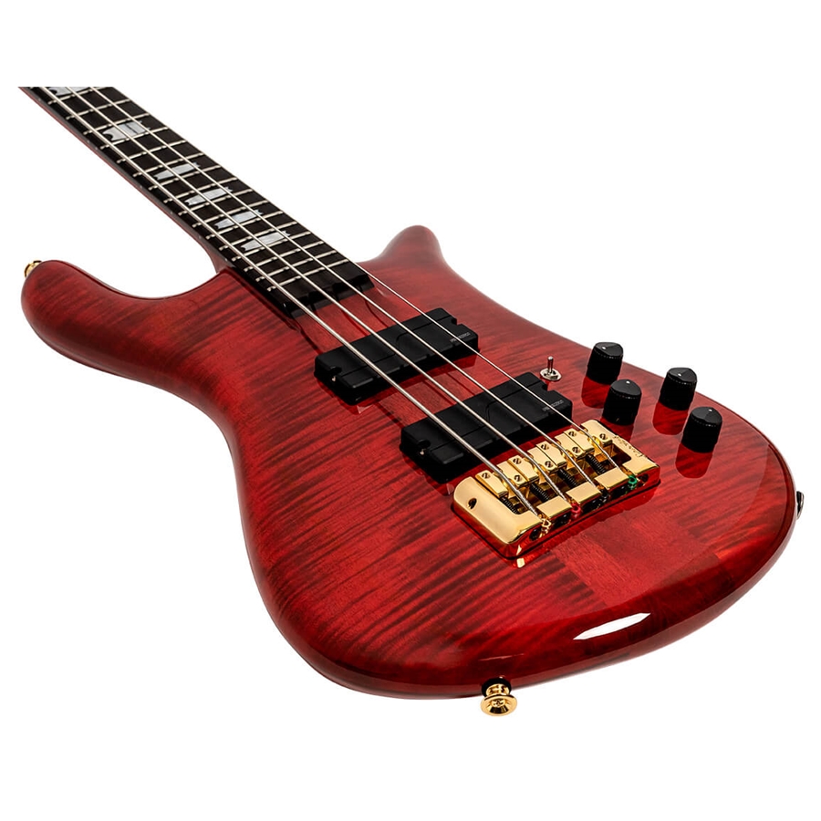 Il corpo è realizzato in Empresswood e decorato con un top in acero figurato. Il manico in acero è composto da tre pezzi, con una tastiera in ebano a 24 tasti, decorata con gli intarsi firmati Spector. L'Euro4 LT Rudy Sarzo monta un ponte Lightweight Locking Bridge e delle meccaniche Gotoh GB-350, che contribuiscono a mantenere lo sturmento leggero. Per mantenere la qualità elevata, questo basso è equipaggiato con dei pickup Fishman Fluence, che offre un'incredibile gamma di toni per ogni situazione. Infine, il nuovo basso di Rudy, presenta una finitura lucida Scarlett Red, esclusiva di questo modello.