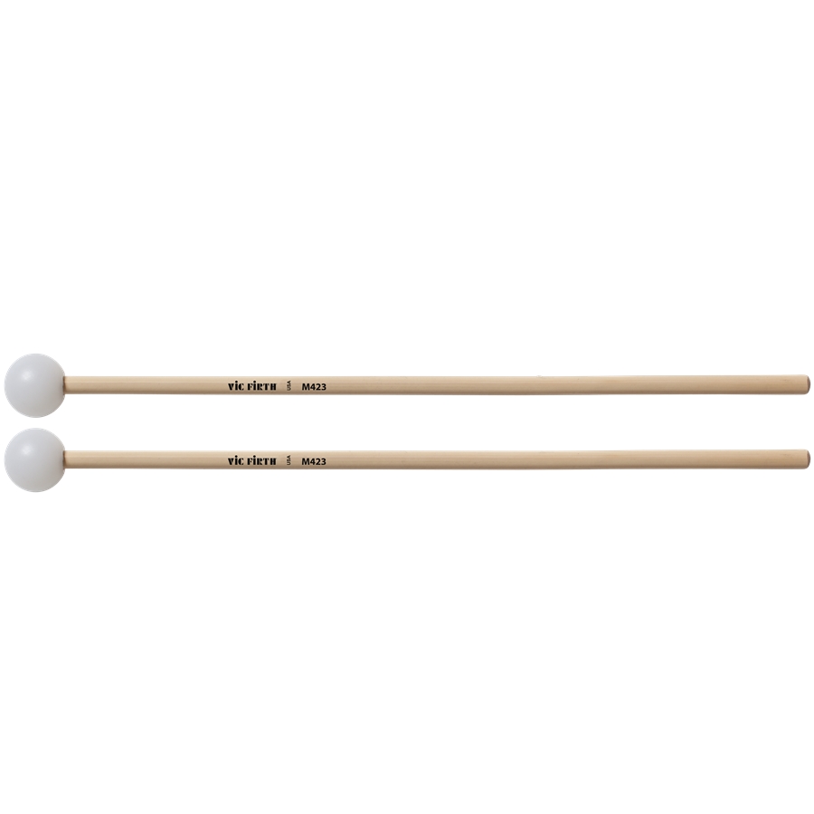 Il mallet per glockenspiel e xilofono Vic Firth M423 Articulate Series Mallet - 1 1/8" Weighted Poly Round è un mallet con testa rotonda in polietilene da 1 1/8" con un peso interno in ottone per una maggiore proiezione dello strumento rispetto al M422.